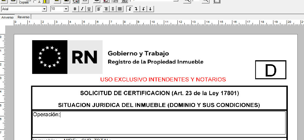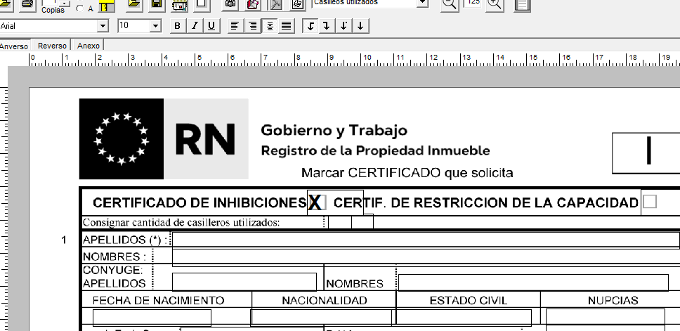 Se incorporó la versión para imprimir sobre formulario preimpreso del modelo Solicitud de Informe Unico del RPI, dicho modelo se llama Arial12_RPI_form_unico_cf.mod y se encuentra en la carpeta Modelos\Capital Federal